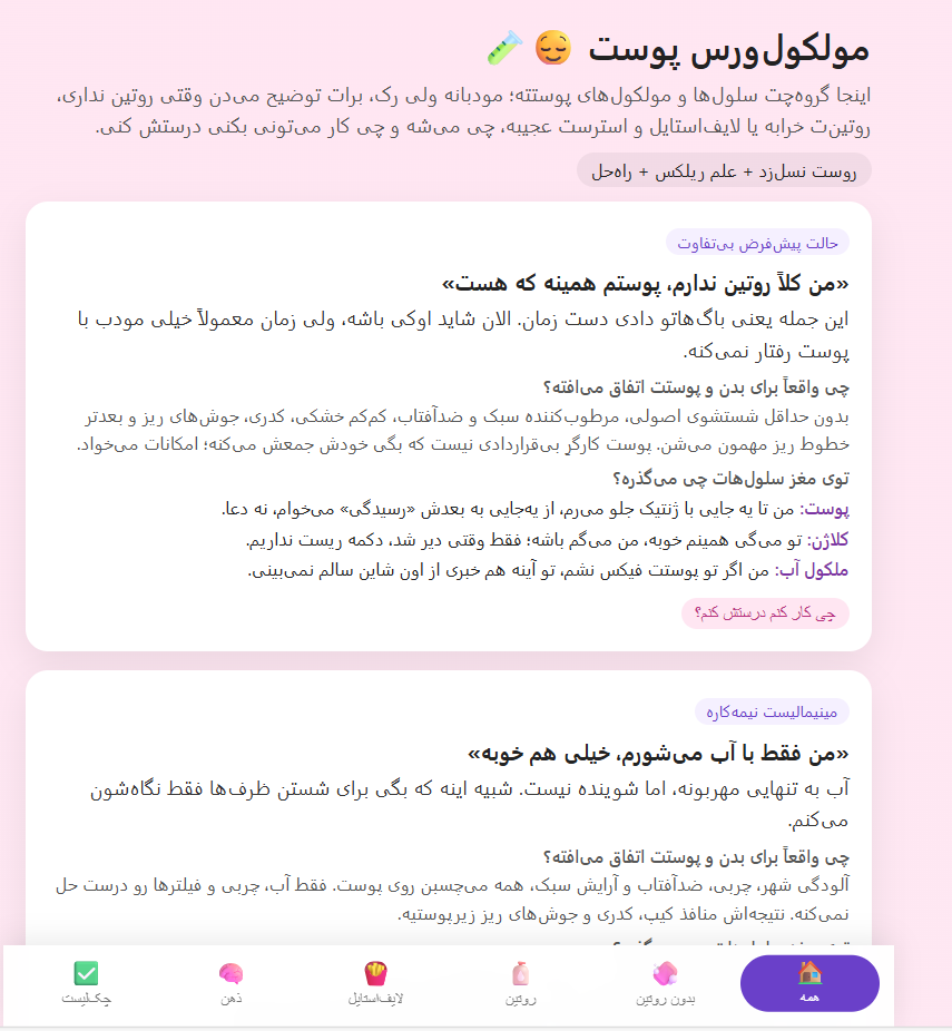 خوش اومدین به دنیای روتینهای هوشمند! 😎✨ توی سایت ما همه چیز دستچین شده تا پوستتون مثل آینه بدرخشه. از نرمافزارهای هوشمند که روتین اختصاصی براتون میچینن گرفته تا یه عالمه محصول که هرچی بخواین توش پیدا میشه.و اما گل سرسبد ماجرا: یه کتاب فشیال داریم به طول و عرض ۱۲۰۰ صفحه!! 😎با خرید این مجموعه، دیگه نیازی نیست این کتاب رو به تنهایی تهیه کنید. همه چی رو یکجا و یککاسه براتون جور کردیم. خلاصه، با ما همراه بشین و بدرخشین! 🌟